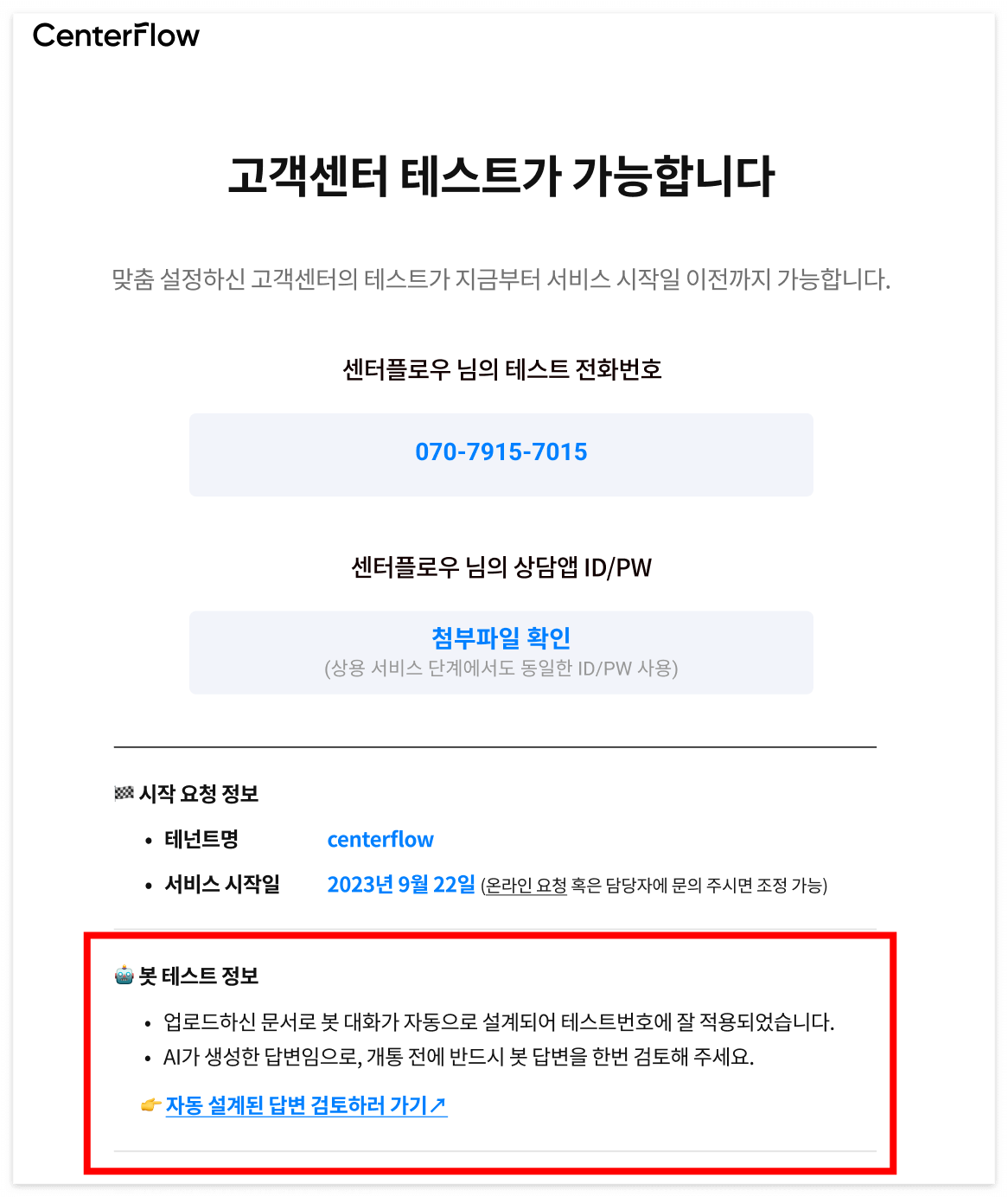 👉 최대 30분이면 콜봇 답변 생성이 완료됩니다.