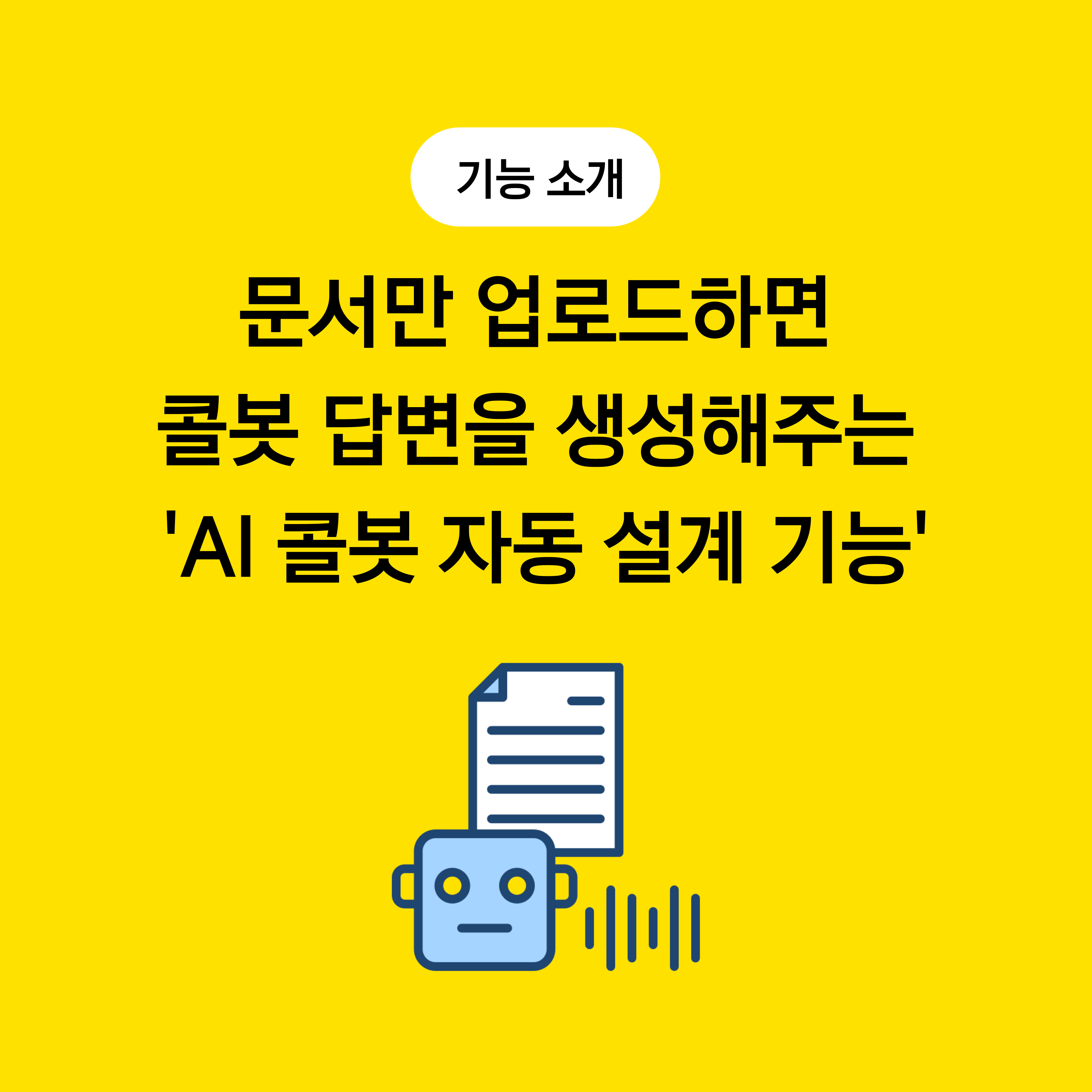 오늘 소개해 드릴 기능! 가지고 있던 ‘문서’만 그대로 업로드 하면 자동으로 콜봇 답변을 설계해 주는 ‘AI 콜봇 자동 설계 기능’입니다.