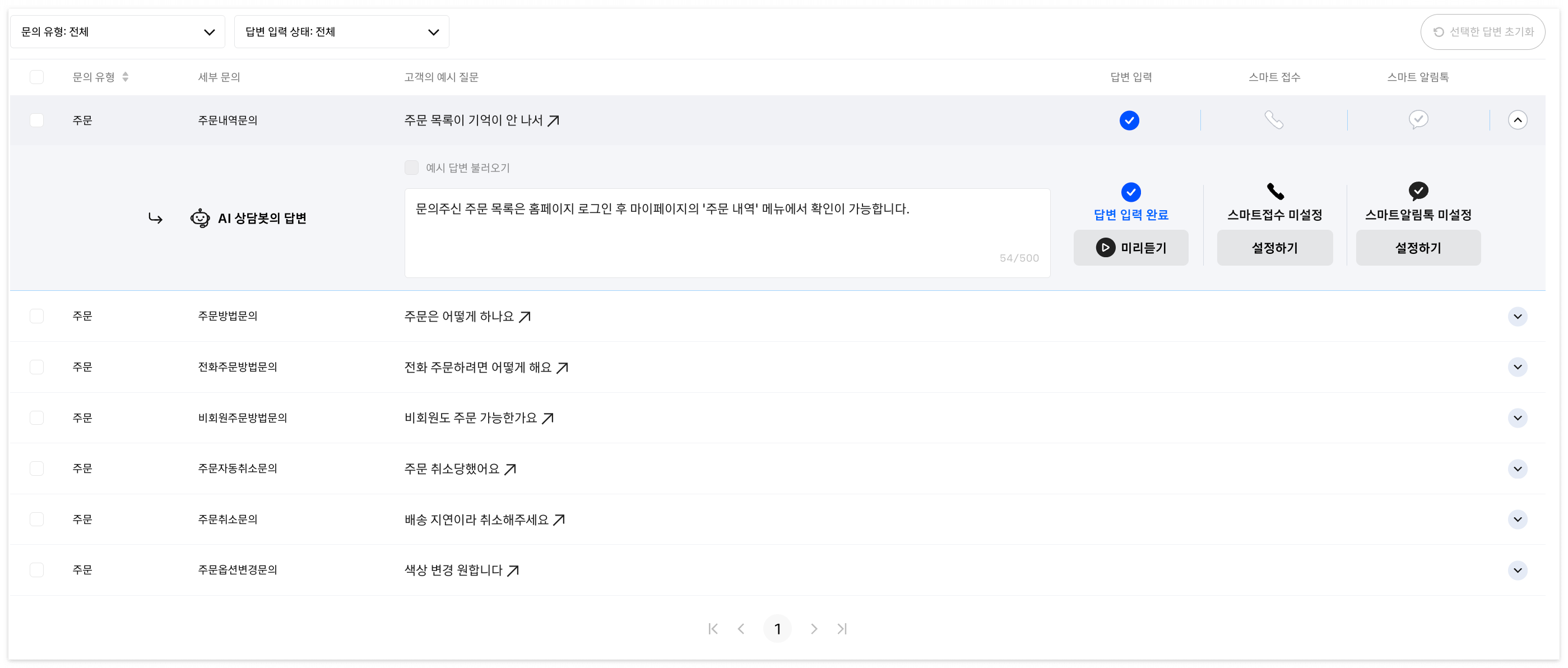 템플릿에는 없지만 고객이 빈번하게 질문하는 내용을 위한 ‘키워드별 답변’ 모두
